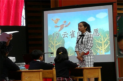 景行小学总校朱秋琳老师也参加了比赛。她执教的是苏教版四年级课文《云雀的心愿》,朱老师用和蔼的语调,带领同学们从两只云雀的视角,了解到森林蓄水、调温的奇妙作用。最后取得了大赛特等奖的好成绩!
