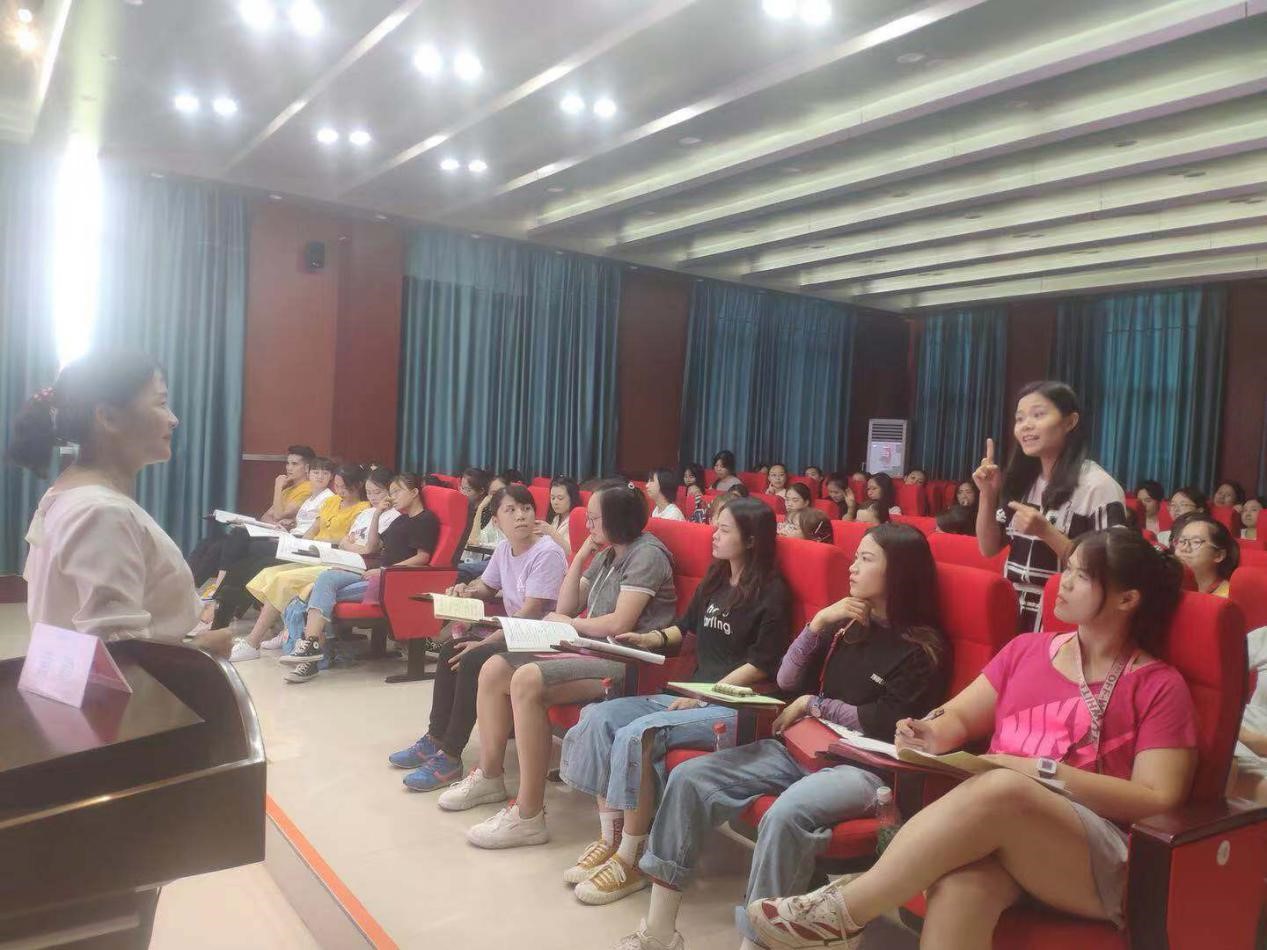 黄主任的讲座内容丰富,分别介绍了班主任工作的前期准备、处理班级问题的有效措施、搭建家校沟通桥梁的有效方法。在座的每一位新老师都因黄主任深入浅出的语言,生动形象的举例,亲切自然的仪态而沉浸其中。黄主任学识渊博,班主任经验更是丰富,她还是国家二级心理咨询师、家庭教育指导师,她精心挑选了四个在担任班主任工作中亲身经历的典型案例,让老师们探究教学教育中出现的学生心理问题,在情景中体悟反思,学习如何用心理学知识帮助学生解决心理问题。老师们时而凝神沉思,时而动笔记录,时而积极探讨……让老师们初步认识心理学知识与教学实践紧密联系,在黄主任的话语中新教师们悟到解决困难的“良方”。