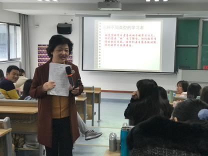 王老师与学员们分享她的教育教学之路,从“如履薄冰”“战战兢兢”到“自信大方”“成就辉煌”,幽默风趣的语言使学员们忍俊不禁,又从欢声笑语中有所感悟,有所收获。