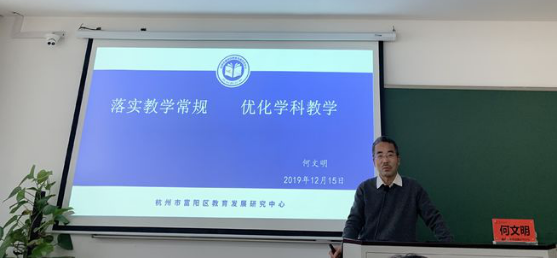 下午,富阳区教育发展研究中心何文明主任以《落实教学常规,优化学科教学》为题,为我们青年教师作教学教研专题讲座。