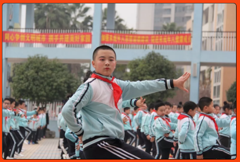 比赛过程当中,所有的学生精神饱满,士气高昂,团结向上,以极大的热情投入到比赛当中,同学们步调一致,衣着整齐,做操动作有力,整齐划一,体现出朝气蓬勃的精神风貌。他们仿佛是站在台上表演的戏曲演员,一边感受戏曲音乐的起承转合,一边体验戏曲表现的手眼身法。