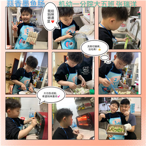 分园大五班张瑞洋小朋友和爸爸一起制作诱人的蒜香墨鱼肠