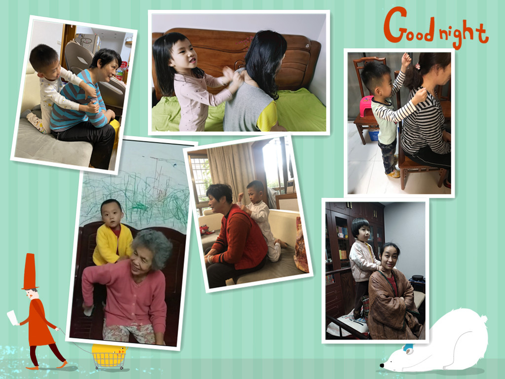 今天我化身为小小按摩师,为劳作了一天的妈妈捶捶背、按按肩~