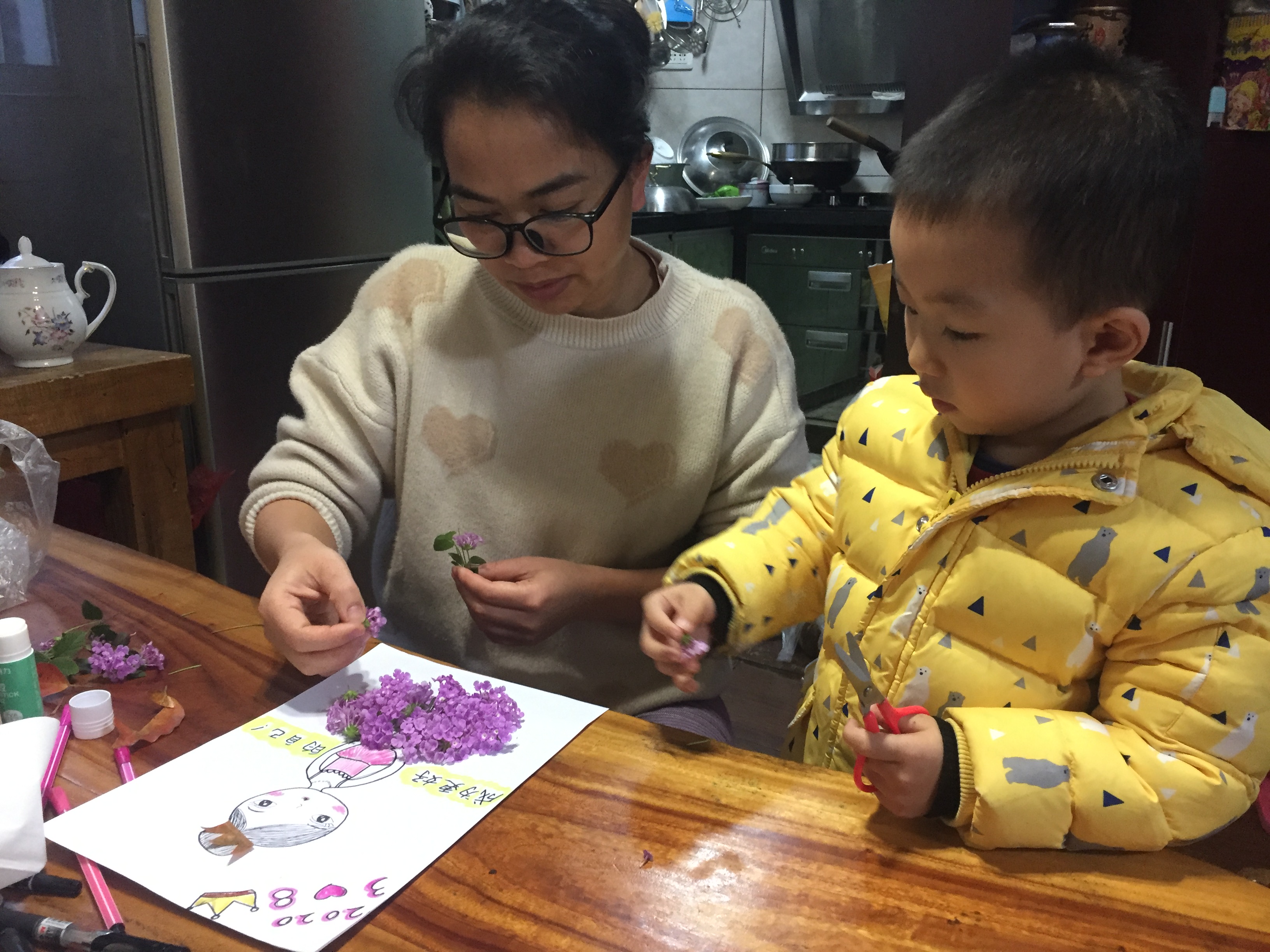 分园小八班韦文良老师在家和宝贝一起制作手工