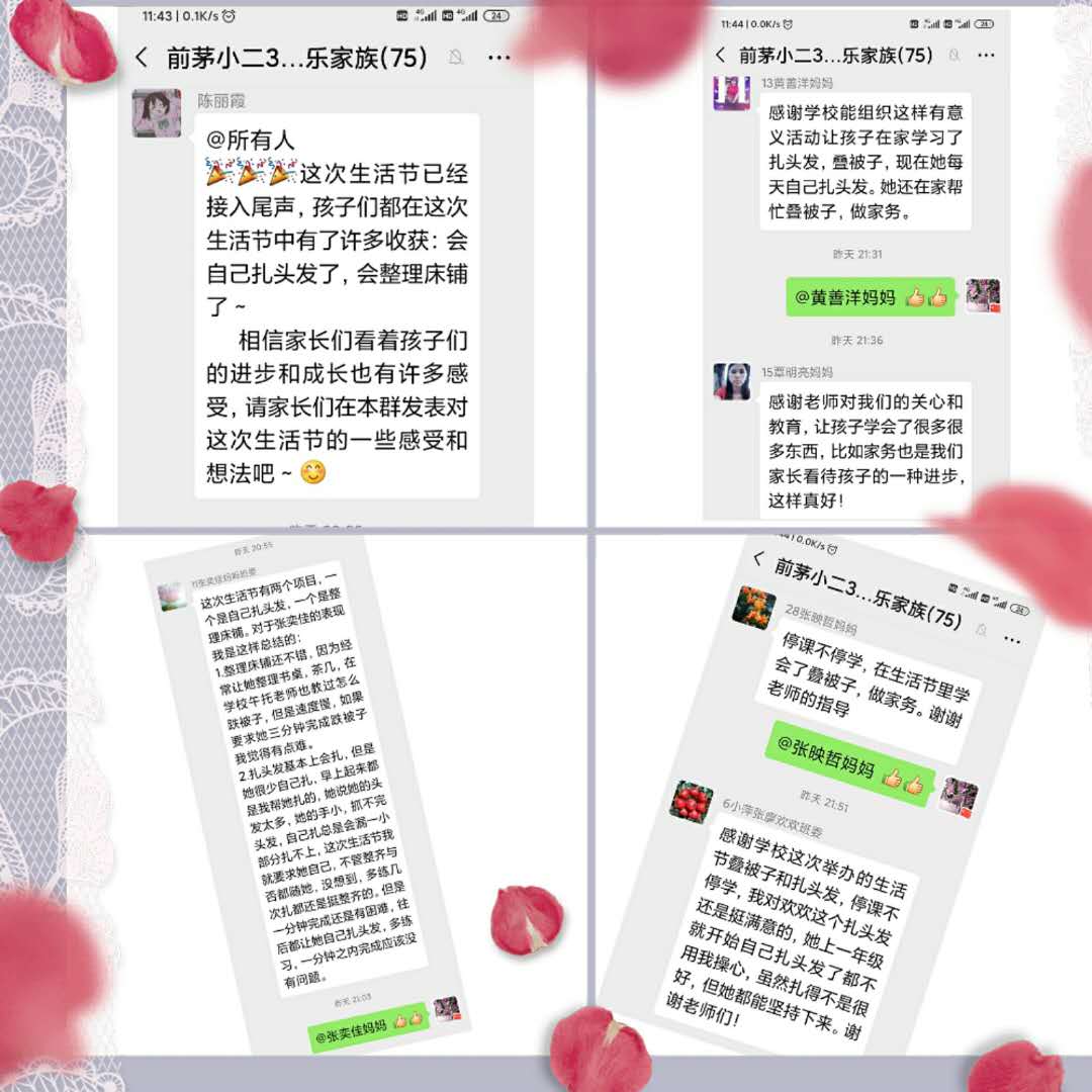 为了培养孩子们的生活技能,树立劳动最光荣的理念,前茅小学的“生活节”系列主题活动已经持续了两年。在丰富多彩的活动中,孩子们争当自理小能手,德、智、体、美、劳得到了全面发展。今后,我们将会持续开展“生活节”系列主题活动,通过丰富多彩的劳动、自理比赛,培养有理想、会学习、爱劳动的前茅学子,让我们一起期待吧!