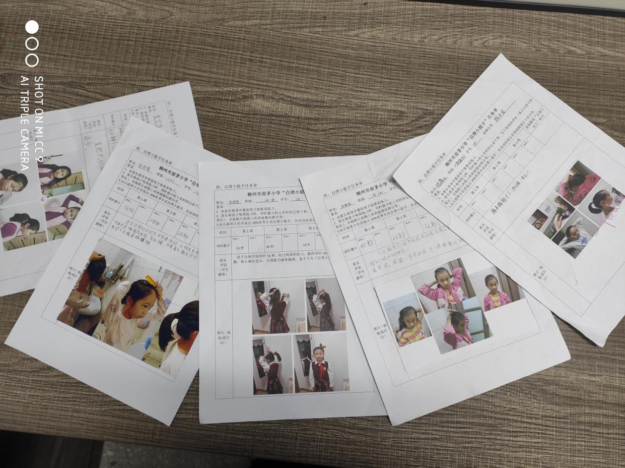 孩子们要在“生活小达人”的主题班会课上认真倾听和积极参与,还得每天在家认真练习,在父母的帮助下填写《“自理小能手”任务单》,挑战自己的最快速度。