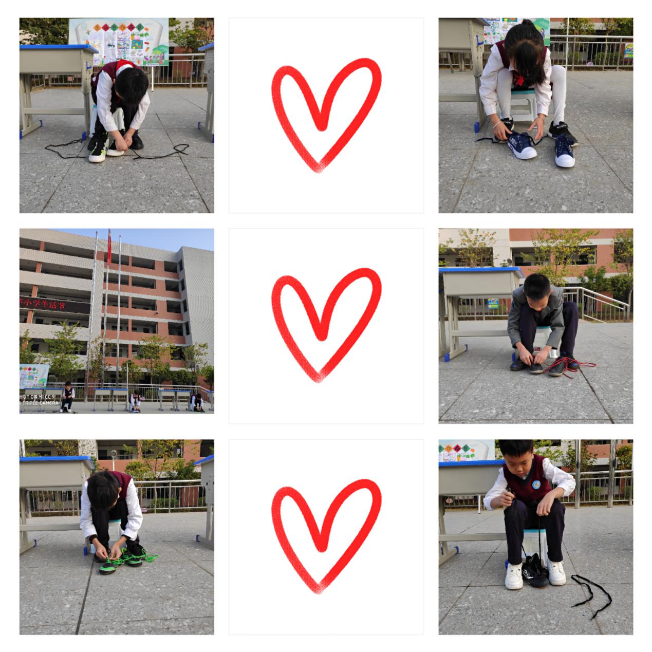 他们比赛的内容是绑鞋带。看!那一双双充满魔力的小手在鞋子上穿梭自如,不一会儿,就有小可爱把本来长长乱乱的鞋带绑成了一个美丽的“小蝴蝶”,真厉害。