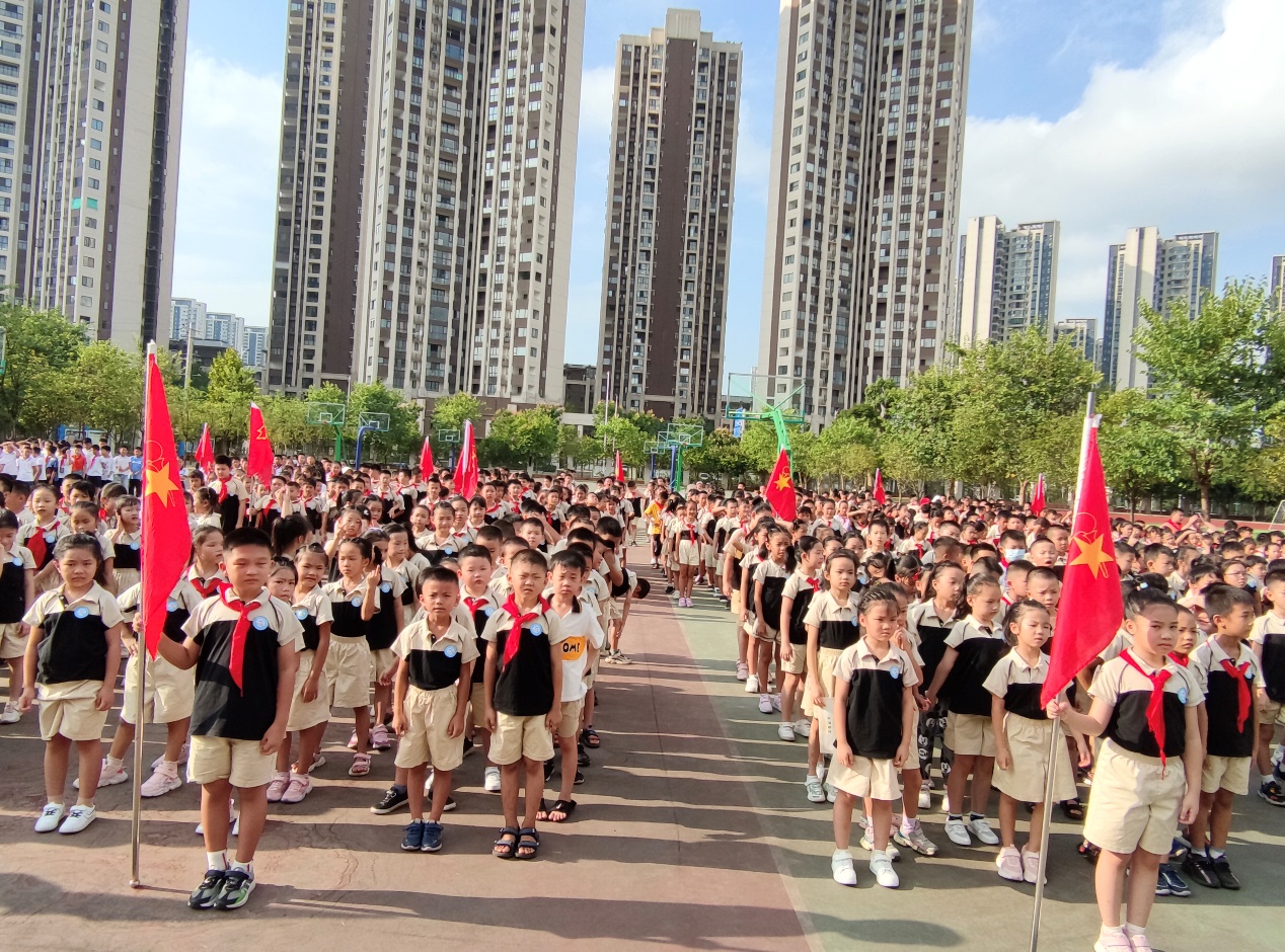 阳光明媚,秋风送爽。2021年8月30日上午8点整,柳州市前茅小学的操场上空歌声嘹亮,红旗飘扬。在庄严的升旗仪式中,柳州市前茅小学2021年秋季开学典礼正式拉开了帷幕。