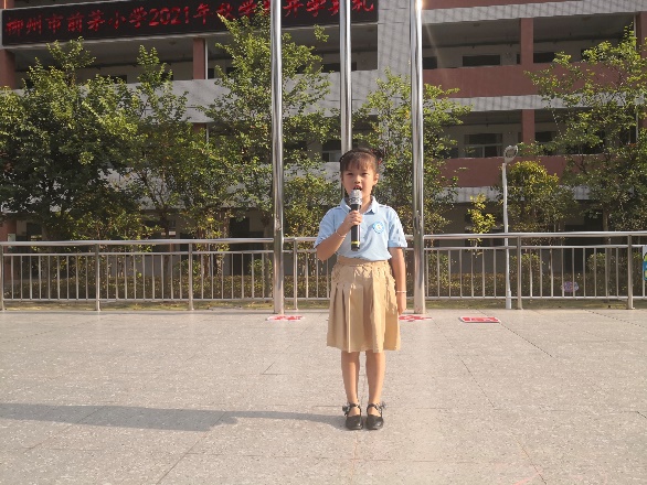 新成长,新启航。一年级(1)班阳睿琋小朋友代表新生发言:“我要努力成为一名知规守矩、阳光健康的小学生。希望同学们加入前茅小学这个大家庭后能够快乐成长、认真学习!”