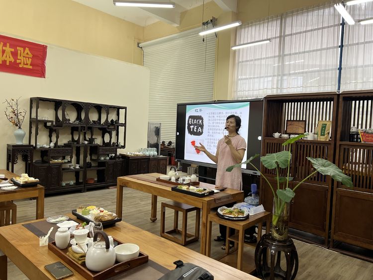 其次,专任教师梁卫华老师带领学员们欣赏茶艺表演、学习茶叶冲泡技艺,并学会品茶和茶礼。学员们兴致高昂,意犹未尽。