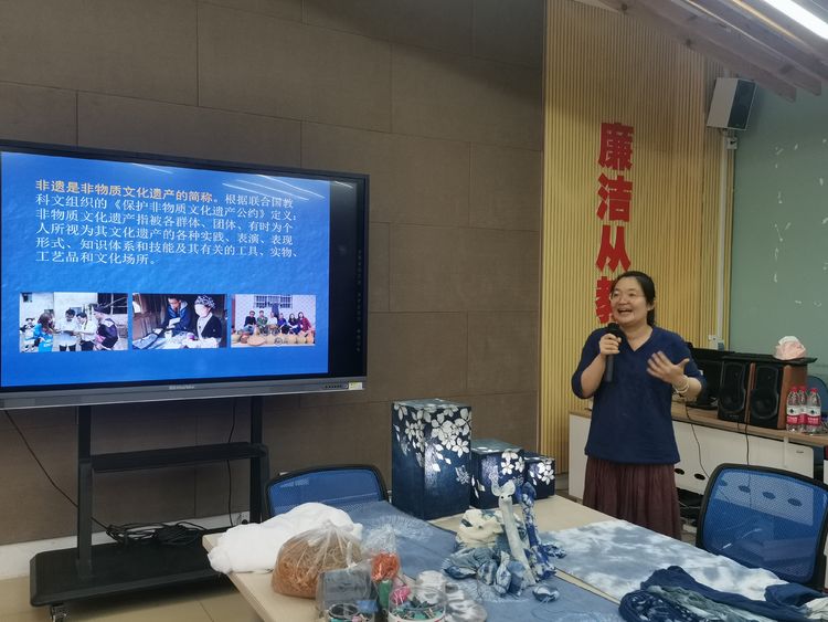随后,建工院的吕爱菊老师为学员介绍了“蓝染之美”,让大家充分了解染布这一非遗文化发展历史和工艺。