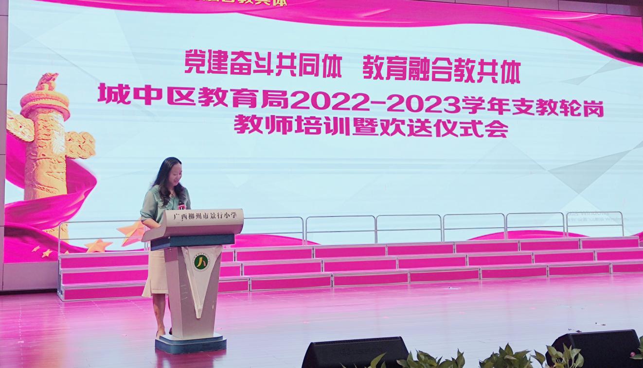 张莉同志结合以往支教工作的情况,对2022-2023学年度支教教师提出了三点希望:一是共建党建“共同体”共促教育“教共体”。以党建共建为契机,加强县区党对教育工作的领导,进一步推动党建与教育教学深度融合,在党建共建的基础上,加强开展人才共育促发展。二是谦虚好学,做好各项工作。积极学习融安教育、柳东新区的优秀的经验和做法。既要把城中区一些成熟的教研机制、管理机制等经验输送到其他城区,更要学习融安和柳东新区的优质经验。三是立足实践,积极推进教学质量提升。积极参与教研教改,主动承担校本培训辅导和讲座,扎扎实实上好“三课”,力促两个城区教育教学质量快速、持续、稳步、和谐的发展。四是善于思考,推动教共体建设行稳致远。在工作中,严格要求自己,对自己的工作要善总结,勤反思,保质保量地完成支教任务。