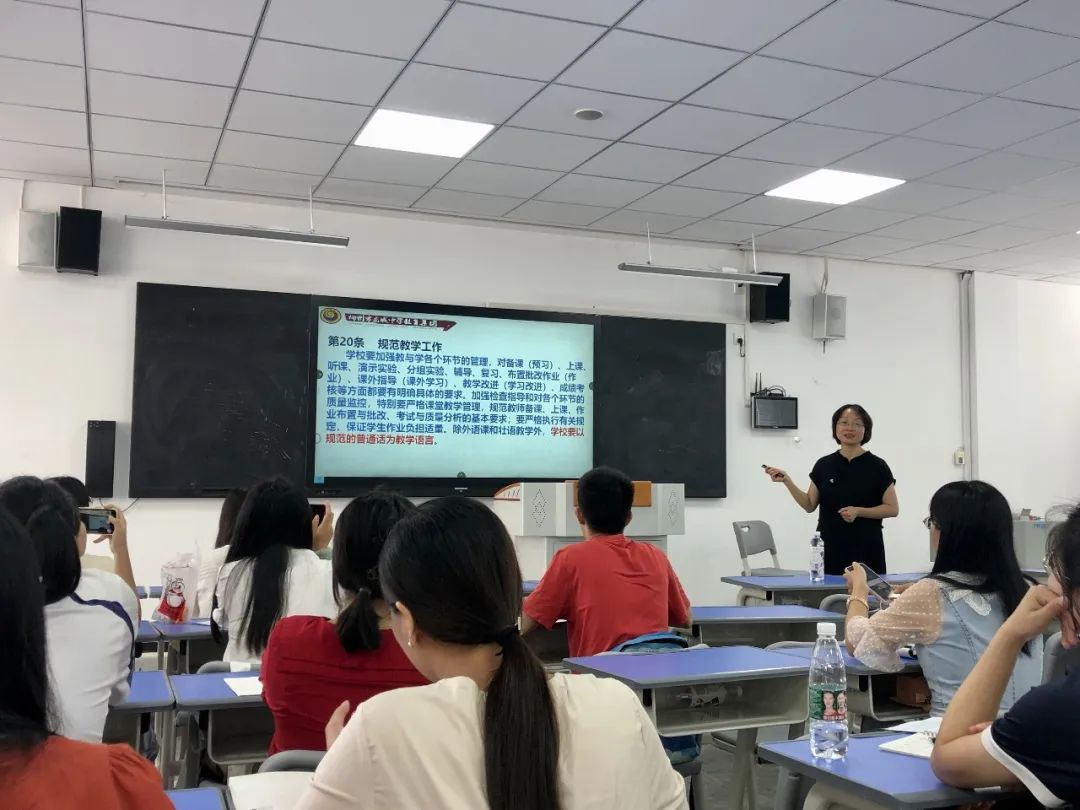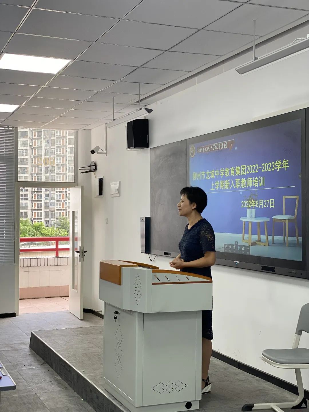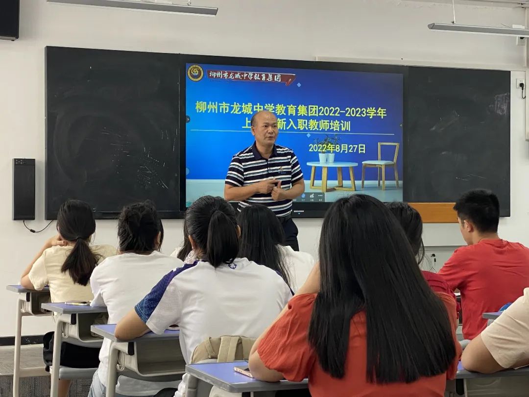 2022年8月27日柳州市龙城中学教育集团2022-2023学年上学期新入职教师培训在东台校区大数据室举行。