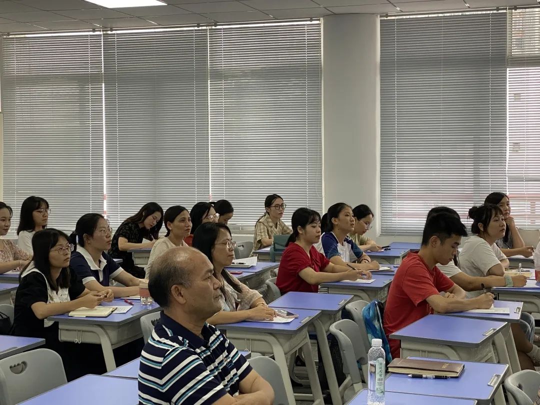 柳州市优秀教师闭文花老师为新教师准备了一场关于教育情怀和奉献精神的讲座《一路修行,行必达》,并结合多年来的教育实践经验,向新教师分享了带班之道与教学之道。