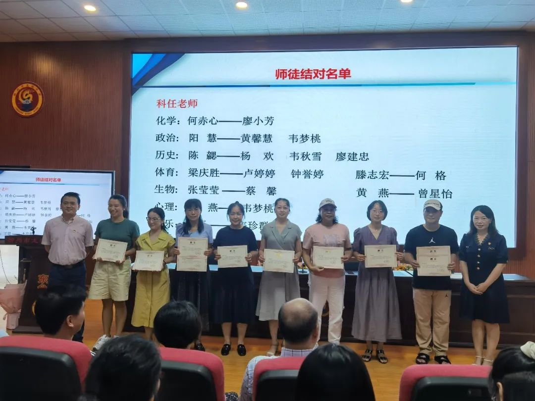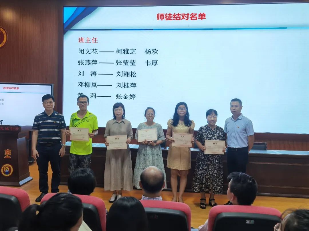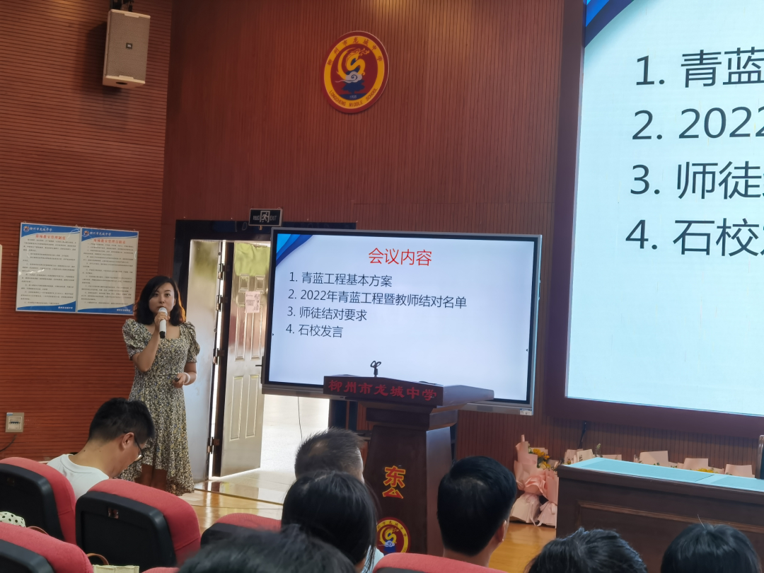 2022年8月30日柳州市龙城中学教育集团于在东台校区举行2022学年青蓝工程启动暨师徒结对仪式,仪式由科研处副主任王莎老师主持,校领导以及师徒结对成员全程参与。