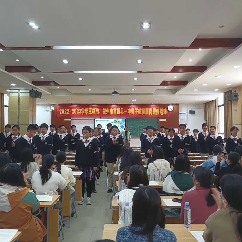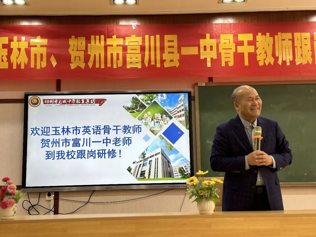 阳春三月,春暖花开。2023年3月10日,玉林市英语骨干教师及贺州市富川一中骨干教师交流团到我校观摩学习。学校领导班子热情接待了远道而来的教育同仁。