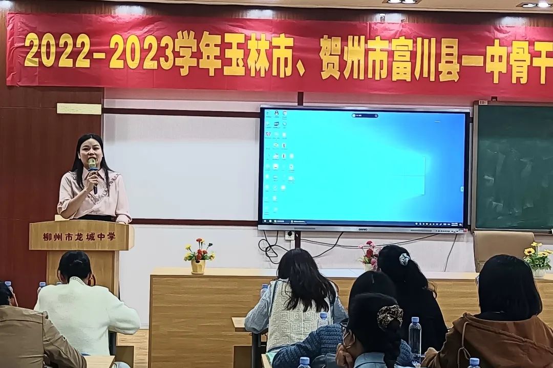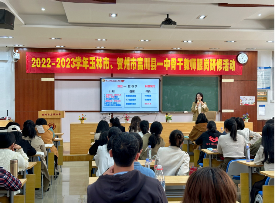 随后,柳州市龙城中学教育集团副校长吴春艳做了教学管理的专题讲座。围绕“规范,高效,特色,共赢”,从学校课程体系地构建、师生的共同成长、教学的核心环节、常规管理的主要措施等方面做了毫无保留地分享,赢得了一阵阵热烈地掌声。