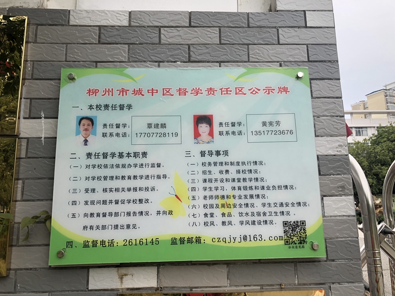 柳州市弯塘教育集团文华校区责任督学挂牌督导公示牌