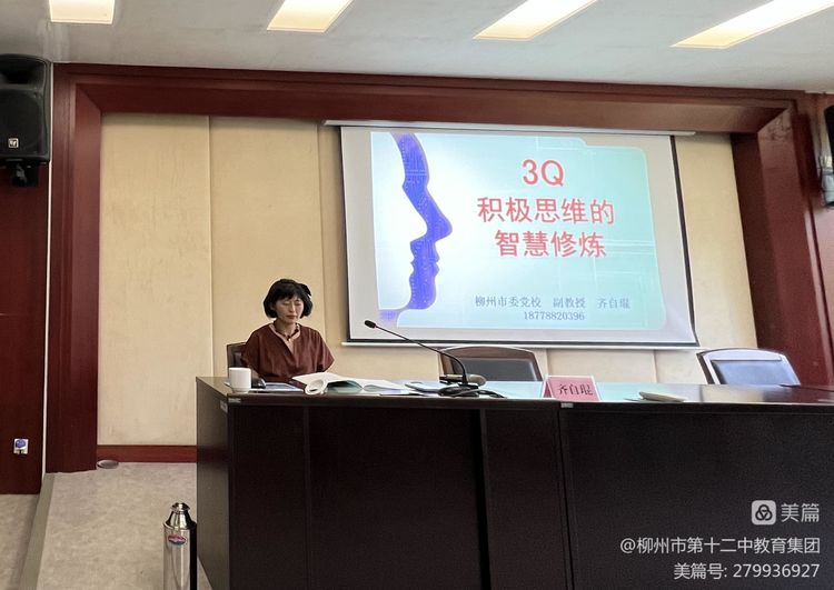 下午,是由柳州市委党校副教授齐自琨为我们作《3Q积极思维的智慧修炼》的讲座。
