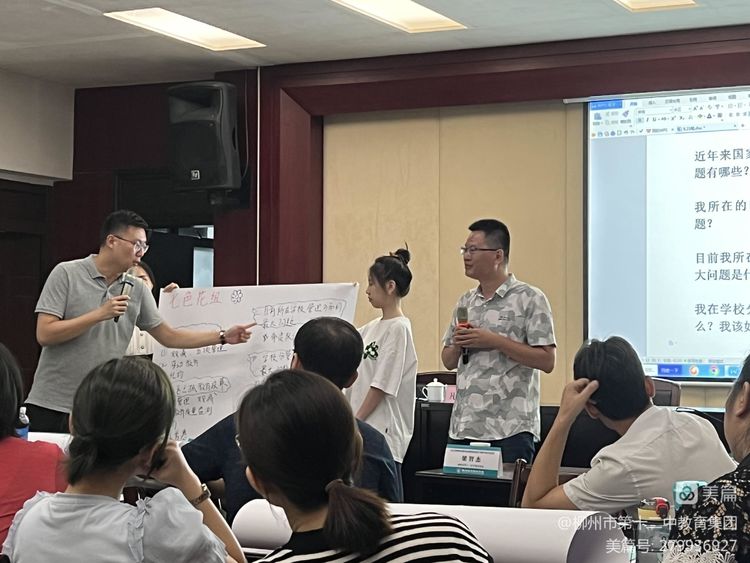 各小组成员踊跃发言,各抒己见,对教育管理中的问题进行深入讨论,将思维碰撞的火花绘于纸上,并进行分享展示。