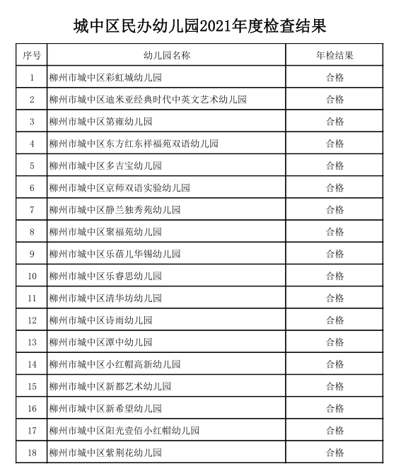 城中区教育局关于辖区民办幼儿园2021年度检查工作结果的公告