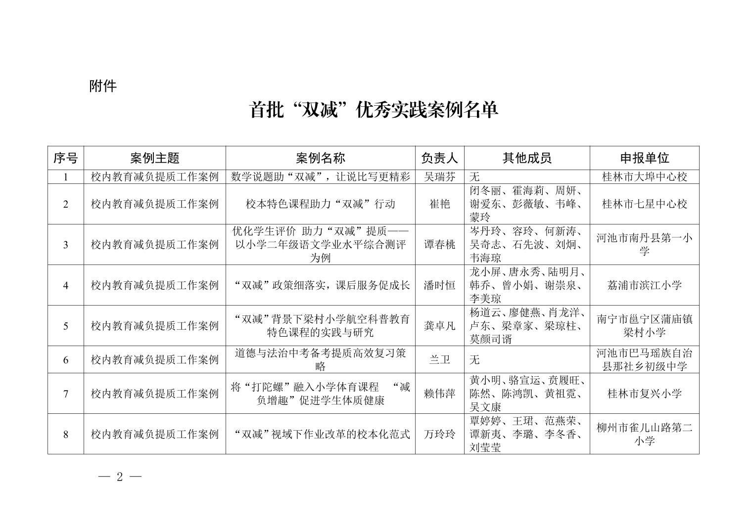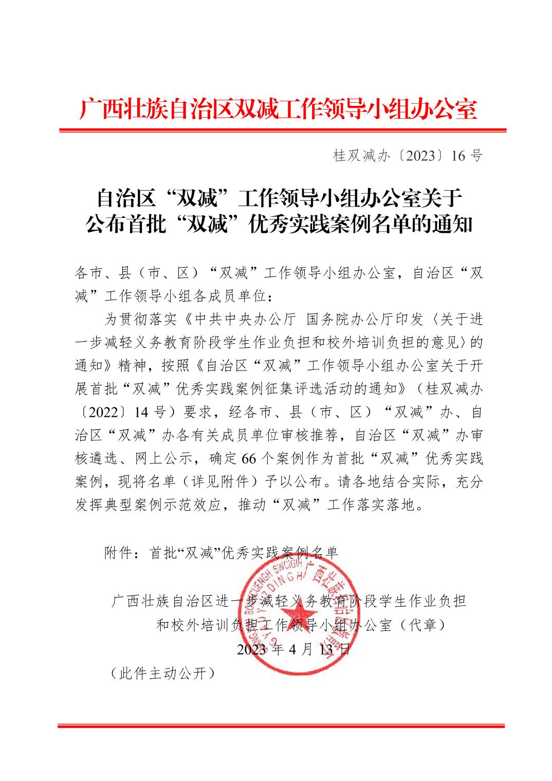桂双减办〔2023〕16号自治区“双减”工作领导小组办公室关于公布首批“双减”优秀实践案例名单的通知