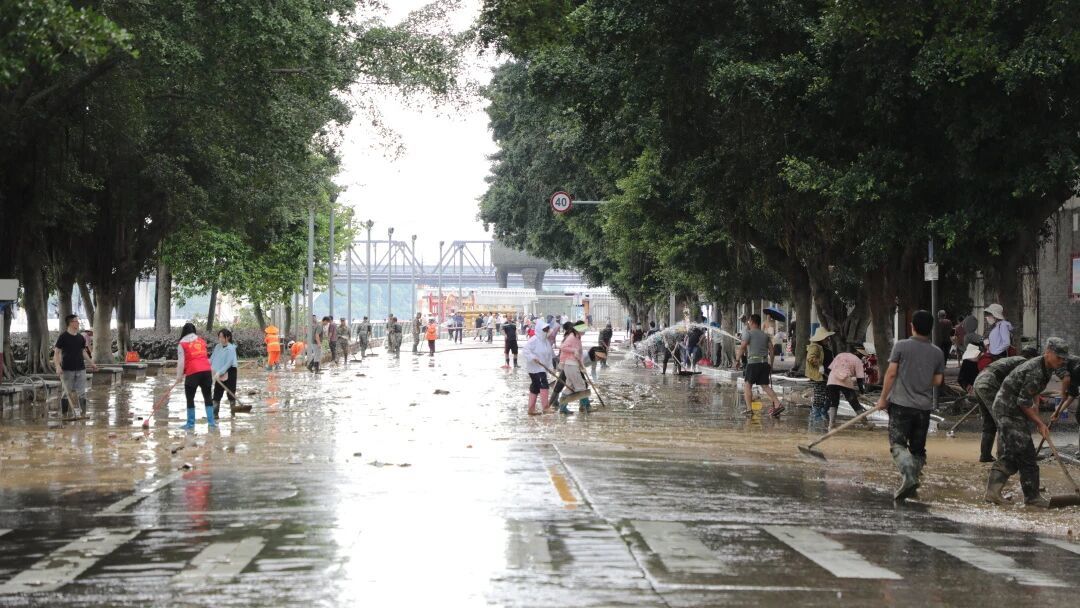 “水位已下降,请大家立即到社区点位集合清淤”“收到!”26日上午7时许,柳江河水位回落至警戒线以下,被洪水淹没过的区域满目淤泥、杂物,恢复沿江道路通畅整洁成为首要任务。各级党组织立即吹响清淤“集结号”,街道社区干部、机关全体人员、武警官兵、环卫工人、消防员、城管队员以及主动加入的外卖骑手、网约车司机党员等千余名党员志愿者奔赴清淤第一线,采取“机械清淤+人工攻坚”相结合的方式,争分夺秒开展清淤行动。在铲车分段推进、消防水枪强力冲洗和党员志愿者们徒手清障、挥锹铲泥的连续作业下,覆盖柳江沿线约18公里的机动车道、人行道、楼栋等受灾区域全部清理完成,实现道路复通。