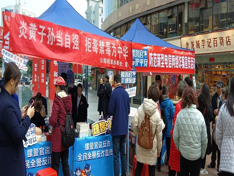 为进一步加大春节期间禁毒宣传工作力度,营造创建禁毒示范城市良好社会氛围,公园街道联合公园派出所在五星步行街口开展禁毒、电信诈骗知识宣传活动,现将活动汇报如下: