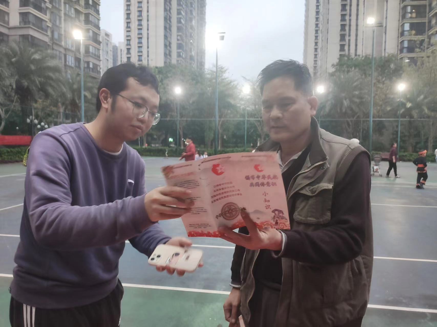 4月9日晚,在广西壮族“三月三”及“4·15”全民国家安全教育日来临之际,静兰街道办在恒大华府小区灯光球场举办三月三文艺演出暨全民国家安全教育日宣传活动,吸引了众多居民参与,现场发放各类宣传资料300余份。演出开始前,主办方还有序组织居民朋友开展投壶、发香包等预热活动,现场氛围热烈隆重,男女老少喜笑开颜,共同庆祝这美好的节日。同时,工作人员为居民热心宣传民族团结、国家安全的相关知识,围绕总体国家安全观“十个坚持”“五个统筹”“五大要素”内涵要求以及新时代国家安全工作发生的历史性变革、取得的历史性成就等内容进行了详细讲解。