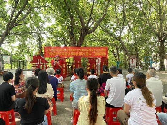 活动邀请了五星社区退休居民党员刘雅丽来向大家分享家风家训故事。刘雅丽从警42年,获市、自治区、全国先进工作者、全国“优秀人民警察”等多个荣誉称号。她用自己丰富的人生经验向大家讲解良好家风家训对家庭教育的意义,引导居民树立良好家风,传递孝老爱亲、勤俭持家、诚信友善、勇于担当等传统美德,让优良家风代代相传,更鼓励大家见贤思齐,做新时代文明人。城中区“小喇叭”青少年宣讲团也来到榕树下,为辖区居民进行“传承孝道美德,做新时代好少年”、“传承红色基因,争做时代新人”、“心系国防,强国有我”等多个主题宣讲,赢得居民群众的阵阵掌声。