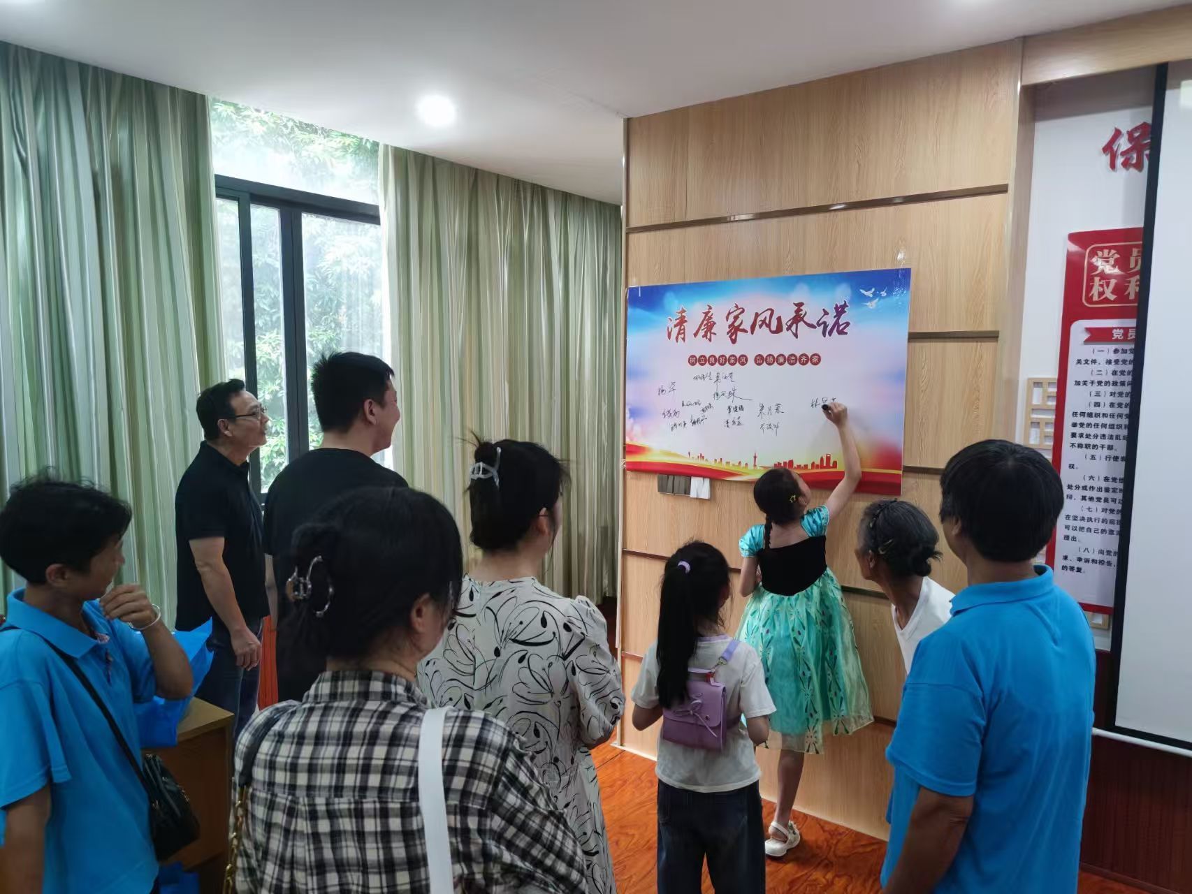 活动上,社区邀请了退休干部、老党员何群生到现场,宣传通过自身的行为习惯,影响家里的人、周边的人,奉公守纪,廉洁自律,构建一个和谐清廉的家庭氛围。同时还观看了宣传短片,让参加的党员、居民群众、青少年对清廉有了更深的认识和理解,最后参加活动的人员在清廉家风承诺墙上进行了签名。