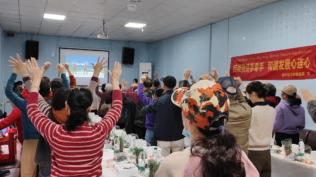 紧接着,健康知识讲座环节有序开展。讲师围绕春季饮食调养、养生锻炼等实用内容进行生动讲解,现场不时响起阵阵掌声。随后的知识抢答将活动推向高潮,参与者踊跃举手抢答,在轻松愉快的互动中加深了对健康常识和民族团结知识的理解。