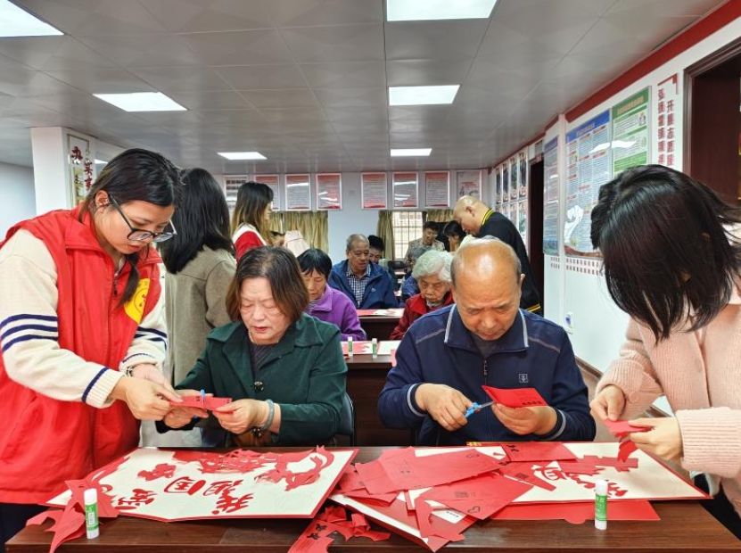 活动伊始,宣讲员从多个重要方面深入讲述爱国主义。宣讲指出,爱国主义是中华民族生生不息的重要精神基因,在中华民族的漫长发展历程中,爱国主义始终是激励全体中华儿女奋勇前行的强大动力。准确把握新时代爱国主义精神的丰富内涵是当代人的重要使命,这一内涵随着时代的发展不断被赋予新的意义。并且从国家、民族和个人三个维度把握新时代爱国主义精神,让居民们深刻理解到爱国主义在不同层面的体现和要求。同时强调把爱国主义精神内化于心、外化于行的重要性,鼓励居民们将爱国情感转化为实际行动,积极为国家的发展、社区的建设贡献力量。随后开展的“祝福祖国”手工贴画活动将现场气氛推向高潮。居民们积极参与,发挥自己的创意,用各种素材制作出一幅幅充满爱国情感的手工贴画。这些贴画不仅展示了居民们的心灵手巧,更体现了他们对伟大祖国的热爱与祝福。
