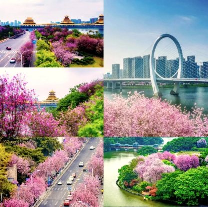 柳州市林业和园林局、文化广电和旅游局联合在五星街、万达、青云等商圈打造主题园林景观,融合紫荆花元素,构建城市“花漾地标”。