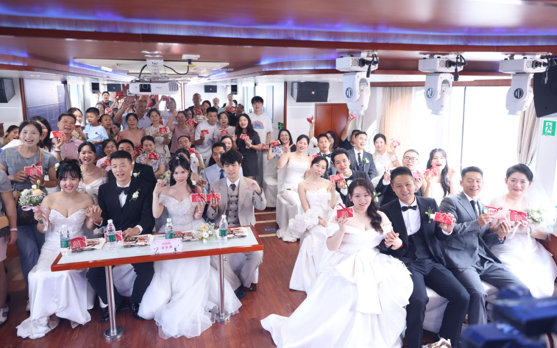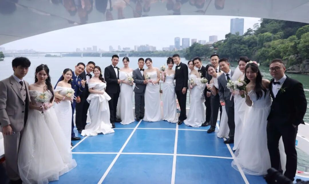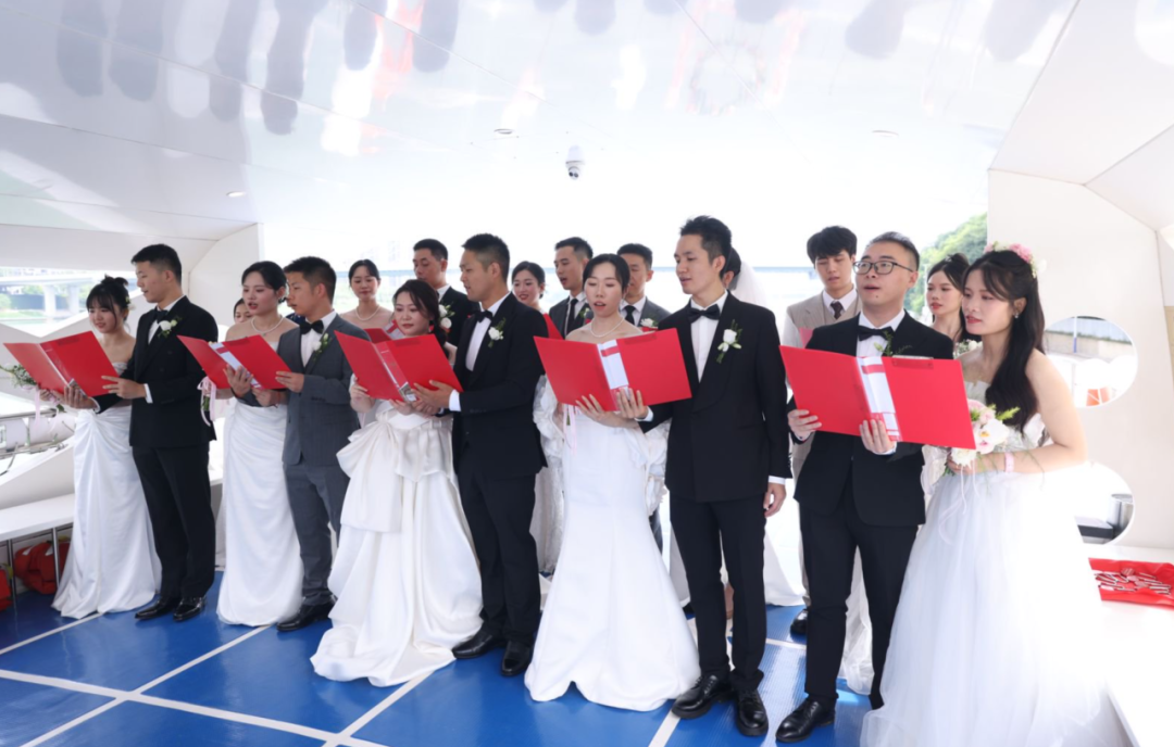 为深入推进婚俗改革,弘扬时代文明新风,8月29日,由柳州市民政局、市妇女联合会、城中区人民政府联合主办的“山水为证·幸福联线”七夕游船集体婚礼在柳江河畔浪漫启航。10对新人身着典雅礼服,以江水为媒、青山为证,在“非凡1号”游船上许下相伴一生的承诺,共同书写新时代青年的文明婚恋新篇章。此次活动作为“龙城十二月市”八月婚市的核心活动,成为柳州深化婚俗改革、打造特色婚俗文化品牌的又一创新实践。
