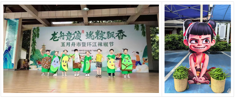 辣椒节将文艺演出、地方美食、辣椒展销、山歌对唱、龙舟表演等巧妙结合,精心打造了一场独具地方特色的乡村盛会。活动现场热闹非凡,各地游客和村民们热情高涨,积极参与其中,共同沉浸在这场别开生面的乡村盛会里。