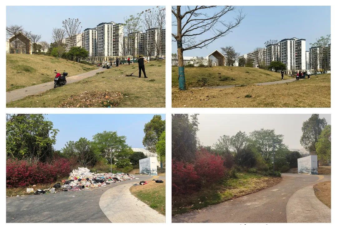 整治行动采取“街道统筹+社区包片+网格落实”模式,将公园划分为4个责任区域,由各社区党委书记带队,联合共建单位、环卫部门,重点整治绿化带积存垃圾、步道杂物堆放等突出问题。志愿者们携带垃圾钳、垃圾袋等工具,清理卫生死角30余处,大型垃圾堆放点4处,共清理垃圾13车,使公园环境焕然一新。