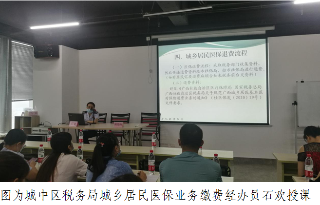 会上,城中区税务局、柳州市医保局医疗保障管理中心、柳州市医保局医疗保障管理中心居民医保科主要负责人应邀授课。分别针对城乡居民基本医疗保险征缴工作、城乡居民基本医疗保险待遇、医疗救助工作进行政策解析,指导医保经办人员开展居民及在校生医保缴费工作,举例解析医疗救助办理流程及注意事项。各级医保经办人员就现阶段工作中出现的问题进行了深入交流。