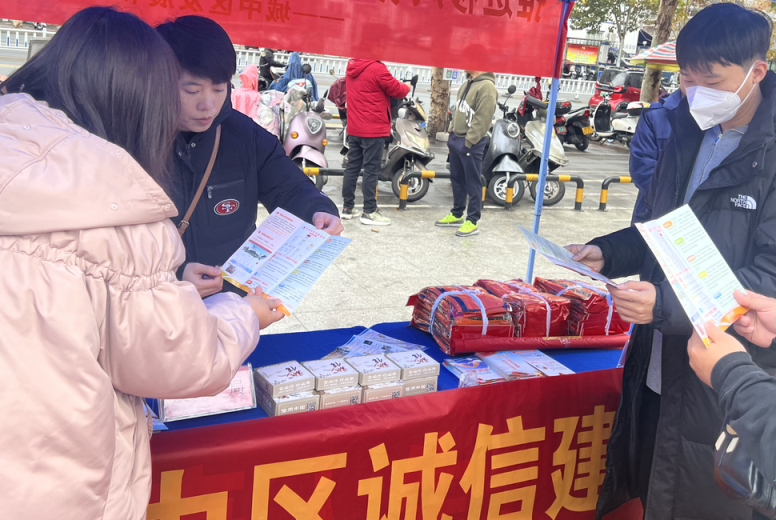 在舞台两侧,由城中区25个部门和“八五”普法讲师团律师分别设立的法律与涉及经济民生问题的咨询宣传台,为过往群众答疑解惑,宣传相关政策、法律法规及宪法知识。城中区发改局通过在现场悬挂宣传横幅、设立宣讲台、发放诚信建设宣传资料等多种方式,积极宣传、讲解信用的重要性,引导广大群众提高诚信意识,牢固树立“信用有价值、守信有力量”的观念,形成“诚实守信、团结互助、健康向上”的道德风尚。当天活动中共发放诚信宣传资料、宣传品200余份。