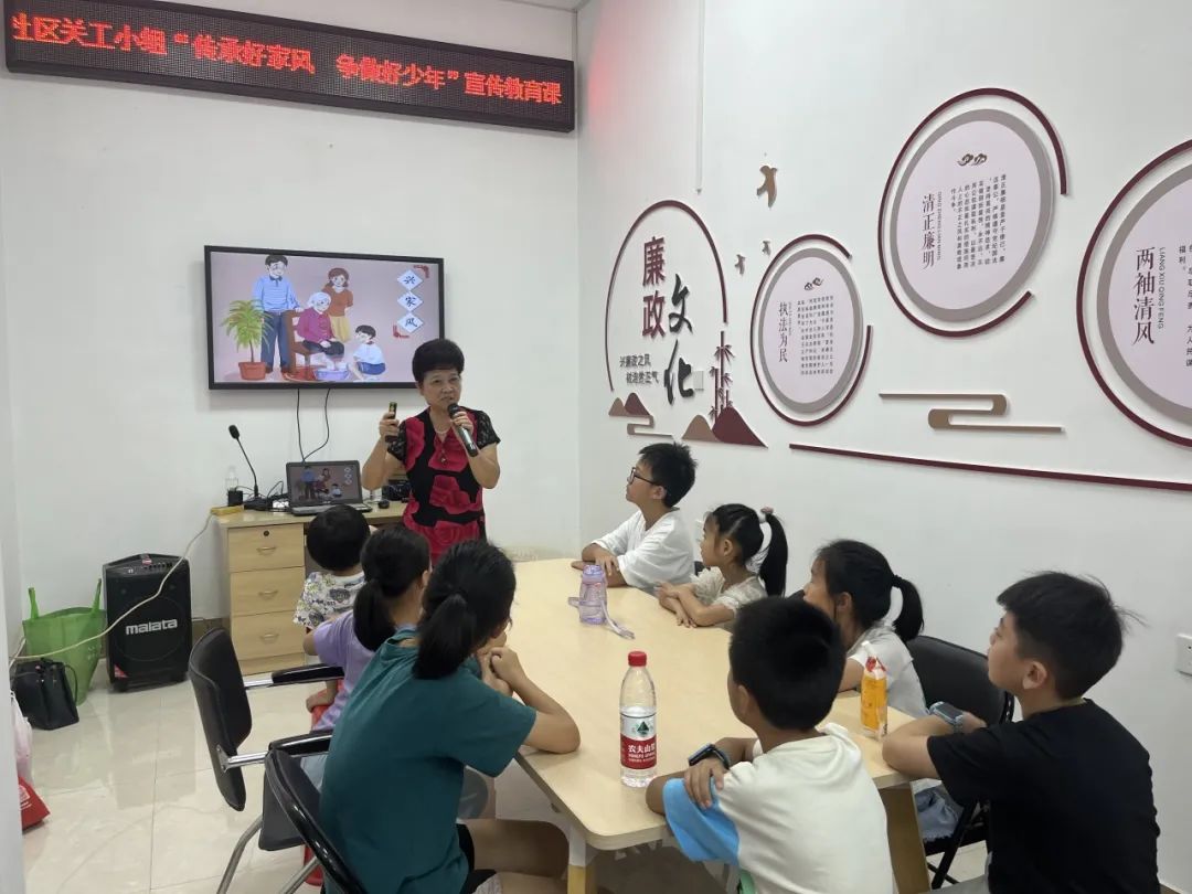 活动现场,首先由社区关工小组孙老师为青少年们带来了一场生动的好家风故事知识讲座。随后活动正式进入第一个环节——“家风故事我来讲”。几位小朋友勇敢地举手发言,用稚嫩却坚定的声音分享了自己家庭中的家风故事。有的讲述了爷爷奶奶勤俭节约、勤劳持家的传统;有的则分享了父母以身作则,教会他们诚实守信、尊老爱幼的宝贵品质。每一个故事都深深打动了在场青少年的心,让大家感受到了家风的力量和温度。