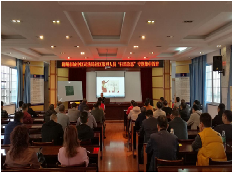 (城中区司法局讯)2018年11月13日,柳州市司法局在三江县召开了全市司法行政系统扫黑除恶专项斗争工作推进会,对全市司法行政系统扎实推进扫黑除恶专项斗争工作向纵深发展进行了再动员,再部署。为迅速贯彻落实会议精神,城中区司法局于11月15日上午在区社区矫正中心再次组织辖区50余名社区服刑人员开展了扫黑除恶专题集中教育。