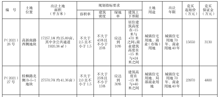 上述两宗地块挂牌时间为:2021年6月18日9时至2021年6月28日10时。