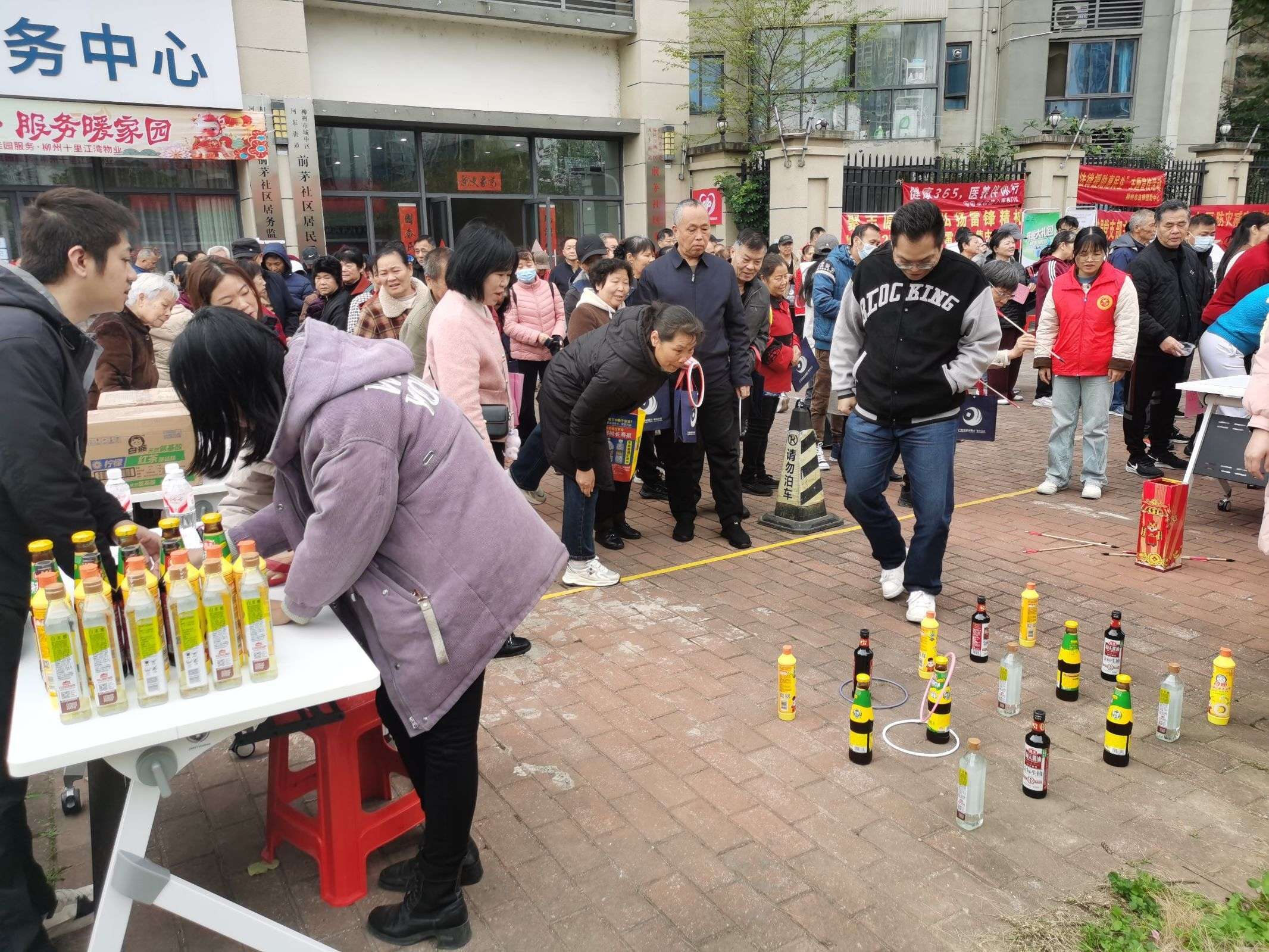 趣味套圈区域人气高涨,生活用品等奖品整齐摆放,吸引不同年龄段的居民参与。大家手持圆环,瞄准目标、轻轻一掷,套中奖品的居民欢呼雀跃,没套中的也互相鼓劲,欢乐的氛围感染着在场每一个人。
