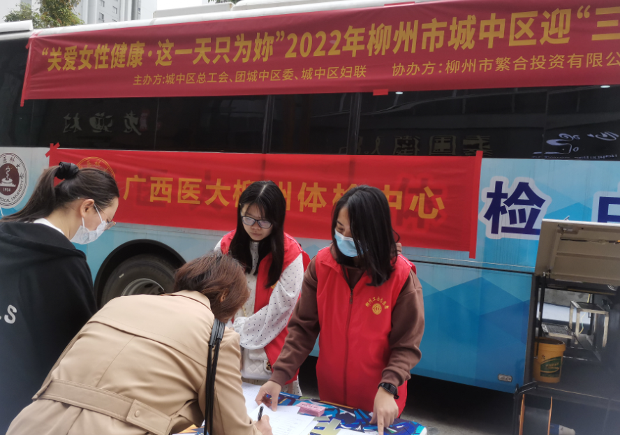 (城中区总工会讯 通讯员彭景泉报道摄影)三月八日,是全世界劳动妇女争取独立、民主、平等、自由的节日。她们精明果敢却又不失妩媚娇柔,时尚美丽却又不失高贵典雅,可是在她们美丽的背后随时面临着疾病的侵袭。为切实维护女职工身心健康,提高妇女同志的健康水平,由城中区总工会、共青团城中区委员会、城中区妇女联合会主办,柳州市繁合投资有限公司工会协办的“关爱女性健康·这一天只为你”2022年城中区迎“三八”免费体检活动,于3月5日--6日在柳州乌托邦南面广场举行。