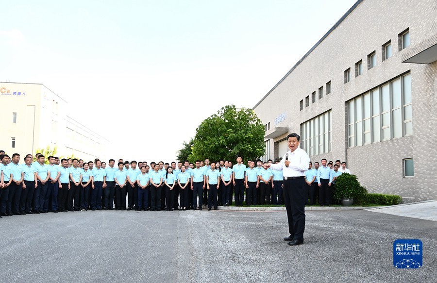 8月16日至17日,中共中央总书记、国家主席、中央军委主席习近平在辽宁考察。这是17日下午,习近平在沈阳新松机器人自动化股份有限公司生产车间考察时,向技术人员和企业职工询问企业开展核心技术攻关等情况。新华社记者 姚大伟 摄