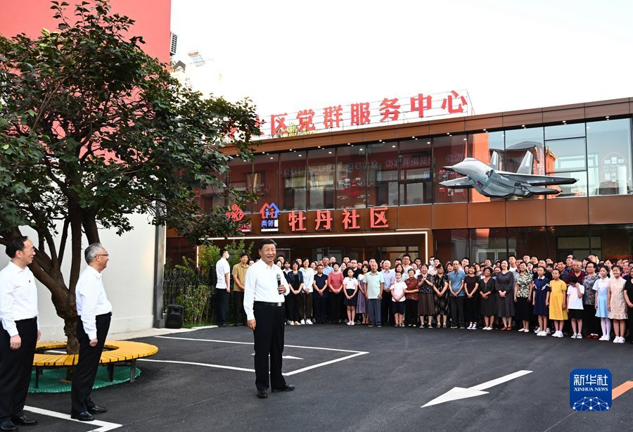 8月16日至17日,中共中央总书记、国家主席、中央军委主席习近平在辽宁考察。这是17日下午,习近平在沈阳市皇姑区三台子街道牡丹社区考察时,同社区居民群众亲切交流。新华社记者 鞠鹏 摄