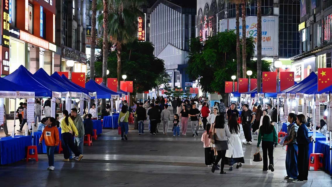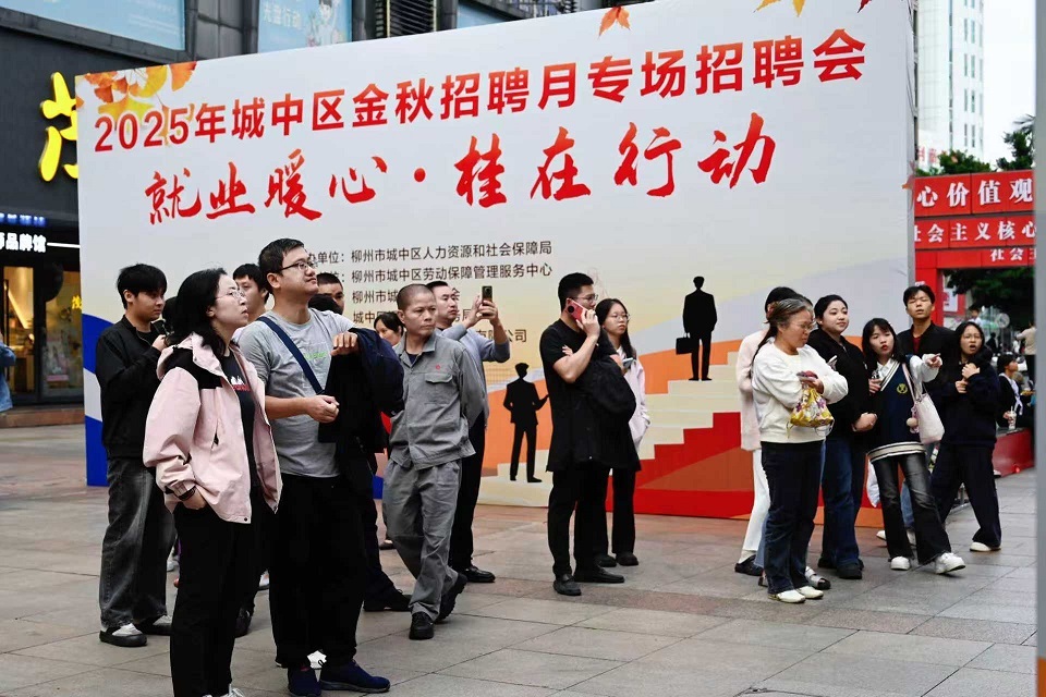 10月26日,2025年城中区金秋招聘月专场招聘会在五星步行街成功举办,吸引不少群众边逛街、边求职。