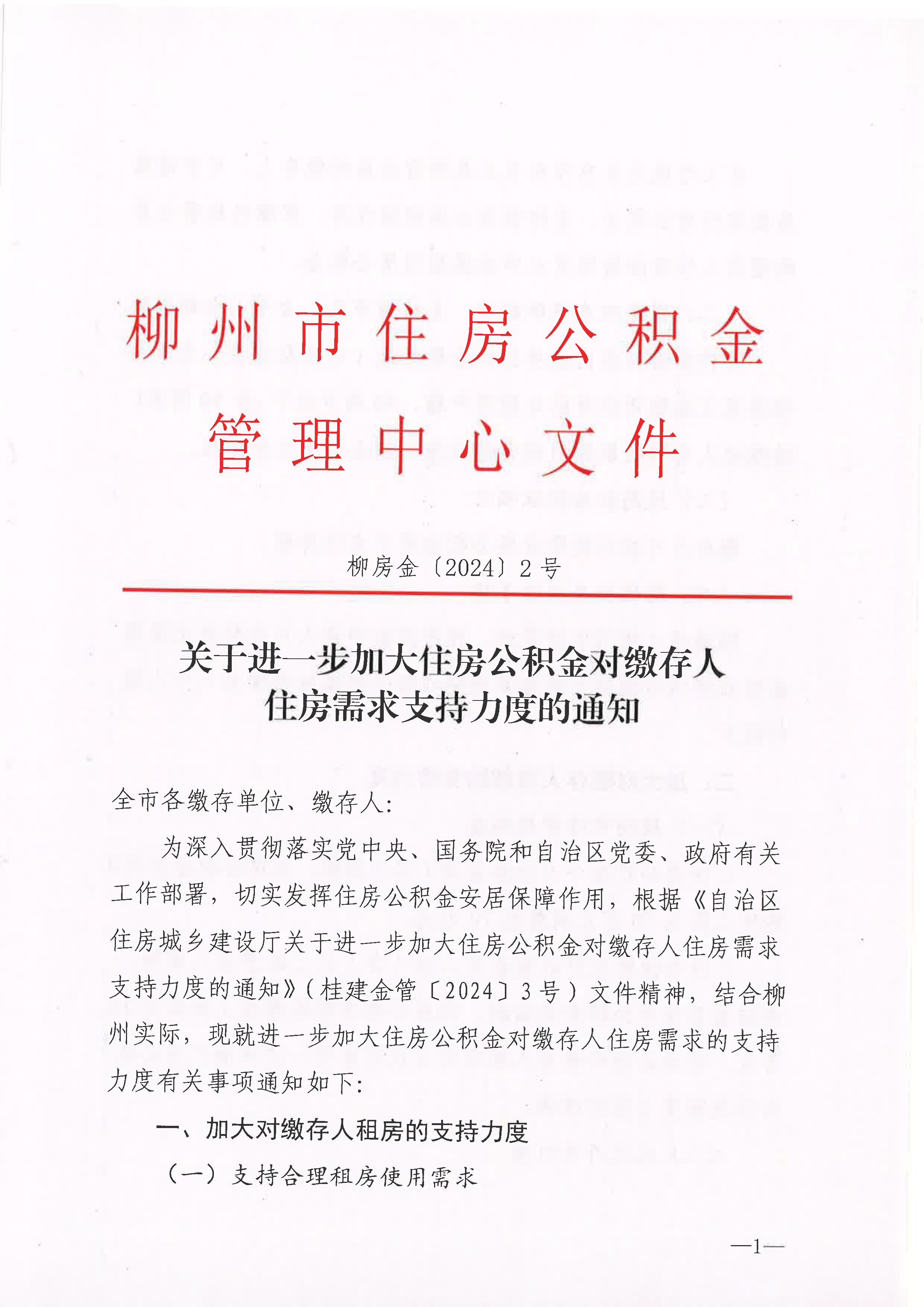 柳房金〔2024〕2号 关于进一步加大住房公积金对缴存人住房需求支持力度的通知