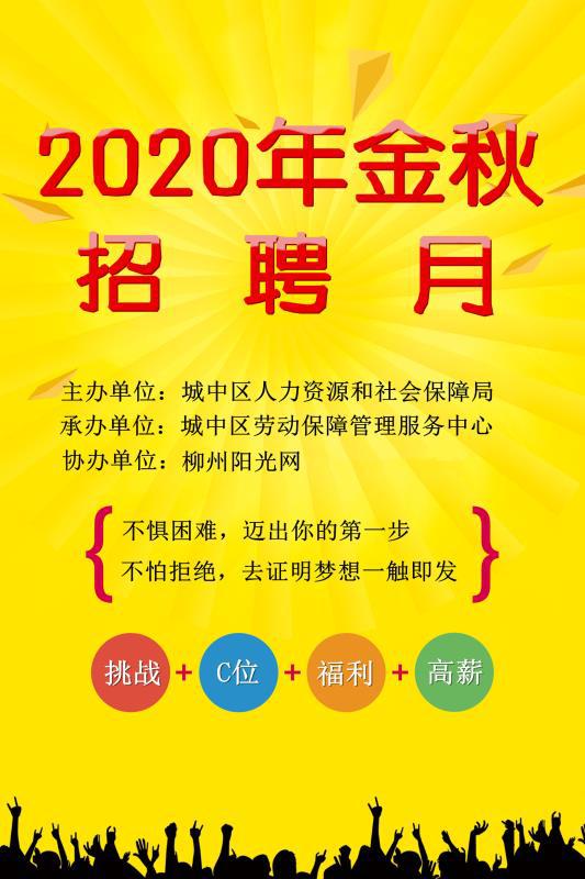 为深入贯彻落实党中央、国务院关于稳就业保就业的决策部署,助力企业发展,加大对重点群体就业服务力度,促进劳动者就业创业,柳州市城中区劳动保障管理服务中心决定于11月开展2020年金秋招聘月线上线下专场招聘会活动。现就有关事项通知如下: