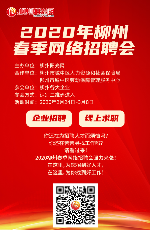随着疫情的缓解,“怎样获取就业信息?企业怎样复工复产?……”成为了各大企业、商家复工复产刻不容缓的问题。为解决企业招工难和疫情带来的就业难题,城中区人力资源和社会保障局、城中区劳动保障管理服务中心与柳州阳光网协同合作,于2月24日—3月8日期间共同举办2020年春季网络招聘会。